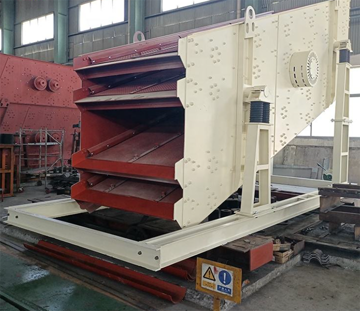 石英砂圆振动筛的动力强劲而且可以高负荷运行,适合筛分石英砂这类硬度高、磨蚀性强的物料;石英砂圆振动筛工作时产生的圆形运动轨迹可以自动抖落卡孔的石英砂颗粒,不容易堵网,使石英砂的筛分效率高;石英砂圆振动筛可以安装多层筛网,可同时对石英砂进行多级分级,这实现了一机多用,减少了设备的数量;石英砂的筛分产量大,圆振动筛适合石英砂生产线的连续性、规模化的生产流程。